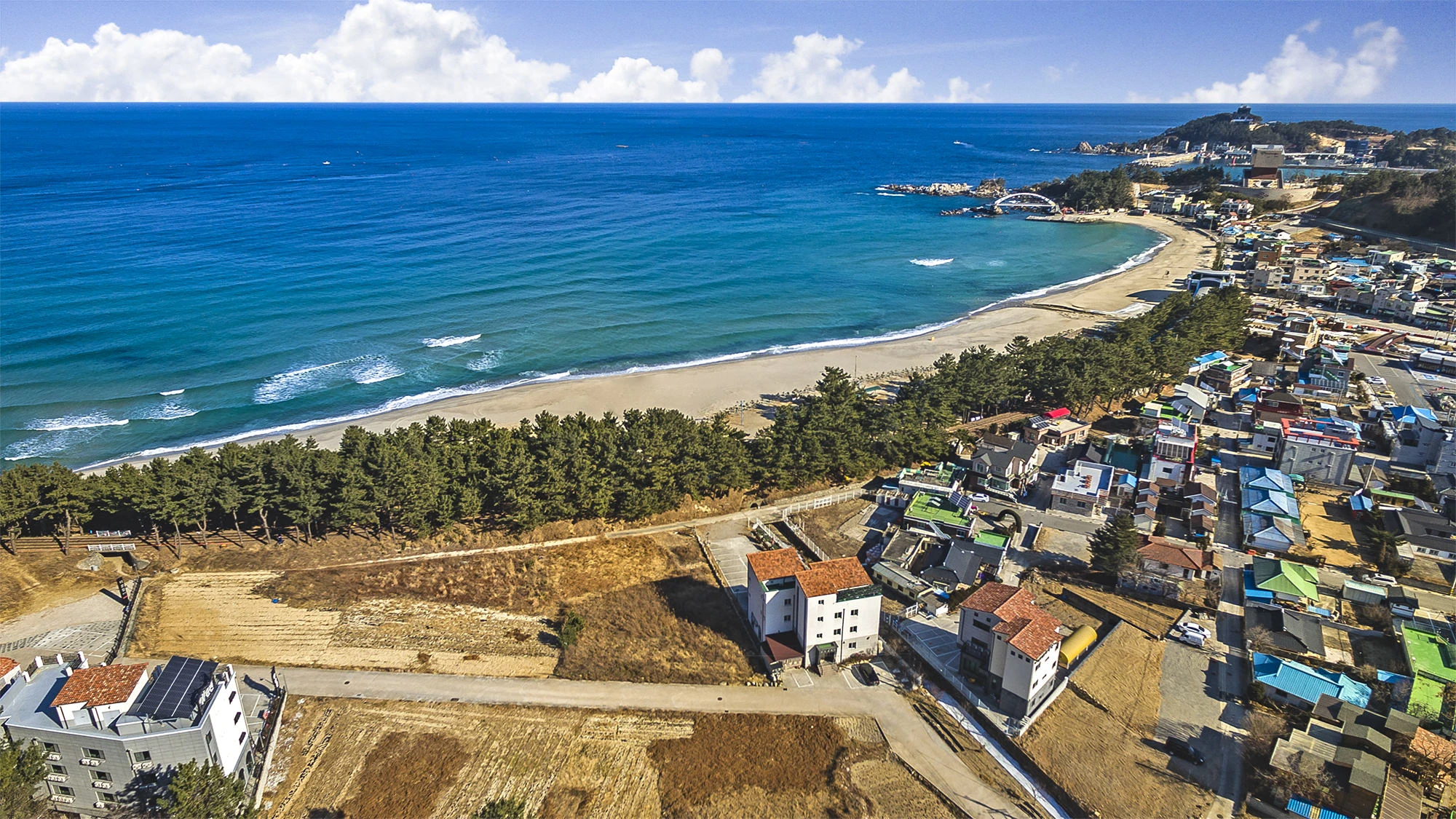펜션 앞 시원하게 뻗은 용화 해수욕장